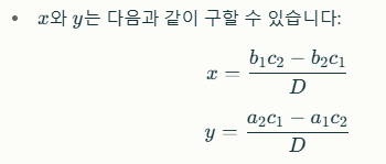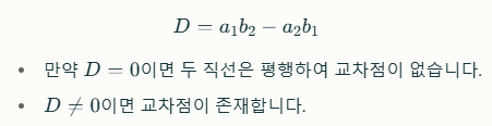 - 두 직선의 방정식을 연립방정식 → 행렬로 표현한다.