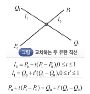 (직선과 평면의 방정식에서 직선 교차가 사용됨.)