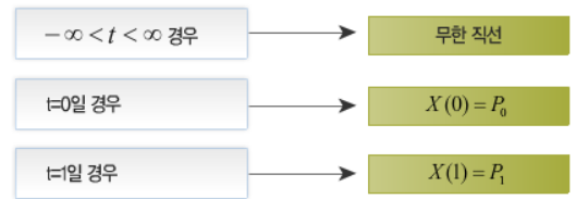 매개변수 t의 범위에 따라 선의 유형이 정의된다. (직선, 반직선, 선분)