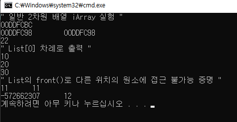 cout << "\" List[0] 차례로 출력 \"" << endl;