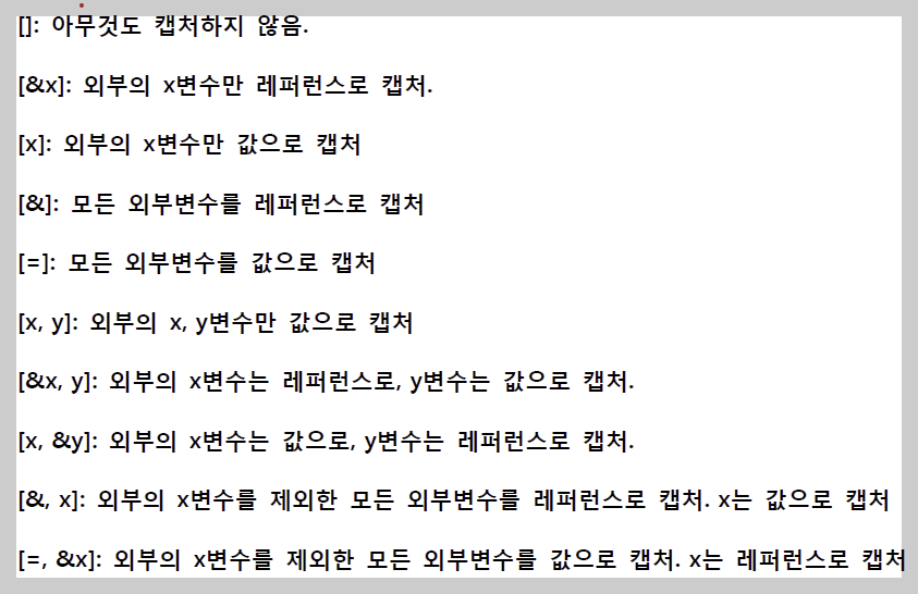 - 원본 값 변경을 위해서는 레퍼런스로 캡처하면 된다.