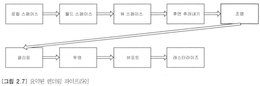 아래는 요약된 렌더링 파이프라인 과정을 설명한다.